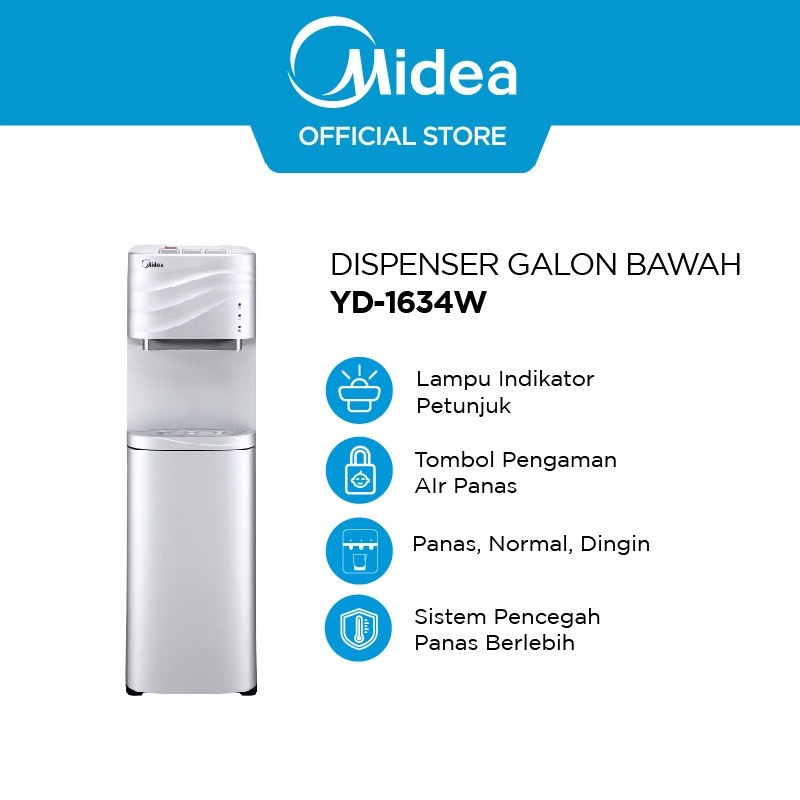 Midea Water Dispenser YD1634W dirancang dengan mempertimbangkan kepraktisan dan estetika. Mengusung desain bottom loading atau galon bawah, dispenser ini secara signifikan menghilangkan kerepotan mengangkat galon air yang berat, cukup geser galon ke bagian bawah dispenser dengan mudah. Desain ini juga membuat tampilan dispenser lebih rapi dan minimalis di rumah Anda. Dengan dimensi produk sekitar 310 x 360 x 1040 mm, dispenser berwarna putih ini tidak akan memakan banyak tempat dan dapat menyatu dengan berbagai interior.