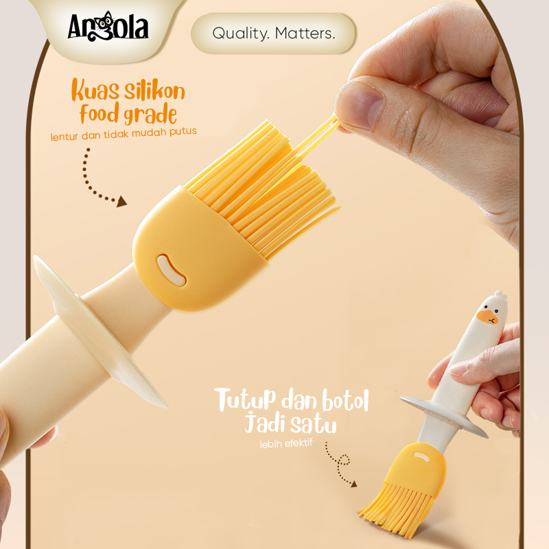 ANGOLA Botol Minyak Dengan Kuas E08 mengusung konsep 2-in-1 yang sangat fungsional. Botol ini terbuat dari kaca transparan yang kokoh, memungkinkan Anda melihat sisa minyak di dalamnya dengan jelas. Desain transparan ini juga membantu dalam menjaga kebersihan dan estetika dapur Anda. Kuasnya sendiri terbuat dari silikon berkualitas tinggi yang aman untuk makanan (food-grade). Kuas silikon ini dikenal tahan terhadap suhu tinggi, bahkan beberapa sumber menyebutkan ketahanannya mencapai 230°C hingga 250°C, menjadikannya aman untuk berbagai metode memasak.Botol ini memiliki dimensi sekitar 7 cm x 17 cm. Meskipun kapasitasnya bervariasi di beberapa model sejenis, untuk model botol minyak kuas 2-in-1 ini umumnya berkapasitas sekitar 180 ml. Bagian mulut botol didesain cukup lebar, memudahkan Anda saat mengisi ulang minyak atau membersihkannya. Kuasnya terintegrasi langsung pada tutup botol, menghilangkan kebutuhan akan alat terpisah dan menghemat ruang penyimpanan di dapur Anda.