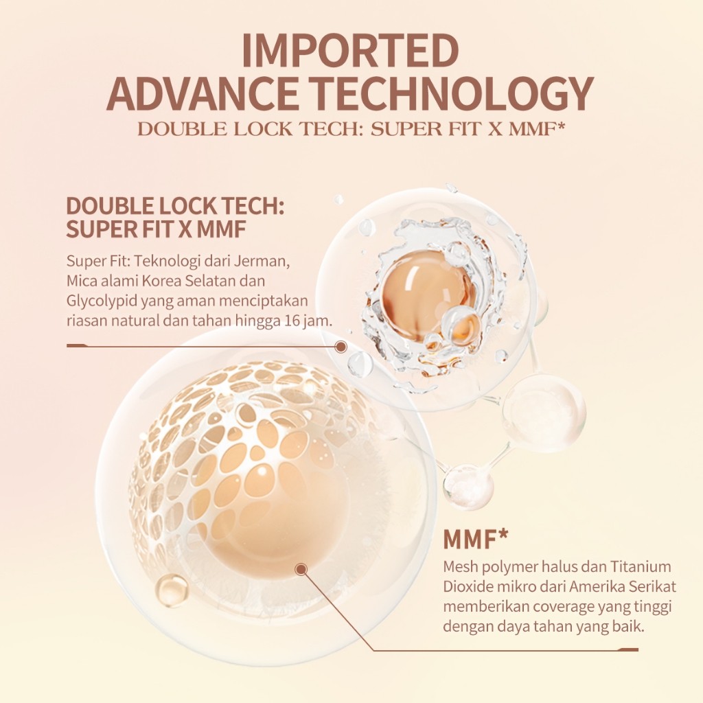 Salah satu keunggulan utamanya adalah perlindungan UV yang solid, yaitu SPF 50+ PA+++. Ini berarti kulit Anda akan terlindungi secara signifikan dari bahaya sinar UVA dan UVB, yang merupakan nilai tambah besar untuk produk riasan harian. Balutan teknologi canggih juga turut disematkan; ada "DOUBLE LOCK TECH" yang diklaim mampu menjaga riasan tetap mulus dan matte hingga 16 jam. Selain itu, teknologi "MiyoSTAY Sebum Control" dari Jepang bertugas mengontrol minyak hingga 8 jam, menjaga tampilan bebas kilap sepanjang hari. Tak perlu khawatir riasan akan luntur karena keringat atau air, sebab formula ini juga didesain tahan air dan transfer, yang sangat praktis di iklim tropis.