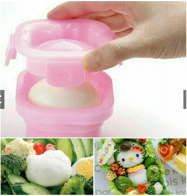 Tidak hanya nasi, cetakan ini juga brilian untuk telur rebus. Rahasianya adalah mencetak telur saat masih panas dan baru dikupas. Masukkan telur ke dalam cetakan, tutup dan kunci perlahan, lalu rendam cetakan berisi telur tersebut ke dalam air dingin selama kurang lebih 10 menit. Setelah itu, buka cetakan, dan Anda akan mendapatkan telur rebus berbentuk Hello Kitty yang lucu. Tinggal potong sedikit bagian pinggiran bekas cetakan, dan telur pun siap menjadi bintang bekal. Kemampuan ganda ini membuat produk ini sangat efisien, bisa dipakai untuk sarapan atau bekal makan siang.