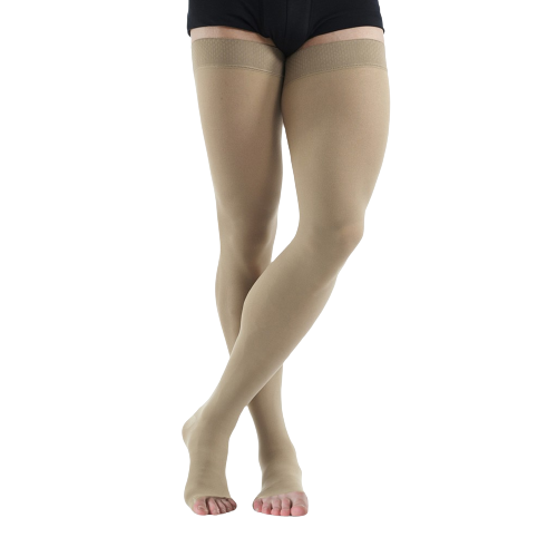 Dynaven Classic AG Open Toes CCL 2 adalah stoking kompresi medis kelas II, yang berarti ia memberikan tekanan gradien antara 23-32 mmHg. Tingkat kompresi ini dikenal sebagai "Firm Compression" dan direkomendasikan secara medis untuk berbagai kondisi vena yang lebih serius. Sebagai produk dengan kode "AG", ini menunjukkan bahwa stoking ini adalah model setinggi paha (thigh-high), menawarkan dukungan kompresi menyeluruh dari pergelangan kaki hingga paha.