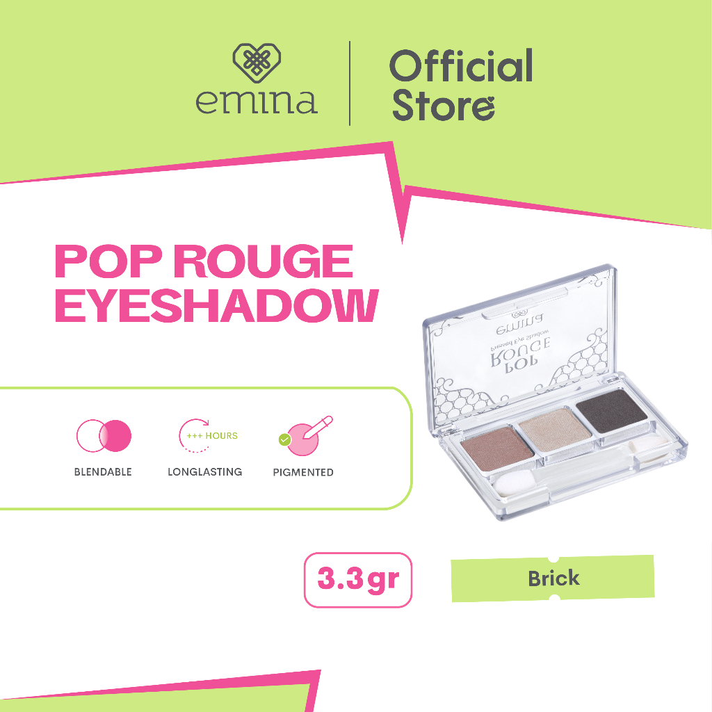 Emina Pop Rouge Pressed Eye Shadow - Brick menjanjikan tiga warna artistik dalam satu palet yang mudah diaplikasikan dan tahan lama. Bagi kami di Blog C&B, fitur utama kombinasi warna terang, medium, dan gelap ini adalah nilai jual utamanya. Shades "Brick" ini, khususnya, dikenal sebagai palet yang cenderung nude/netral, sangat cocok untuk tampilan sehari-hari atau bagi pemula yang tidak ingin terlalu banyak warna pada riasan mata mereka.