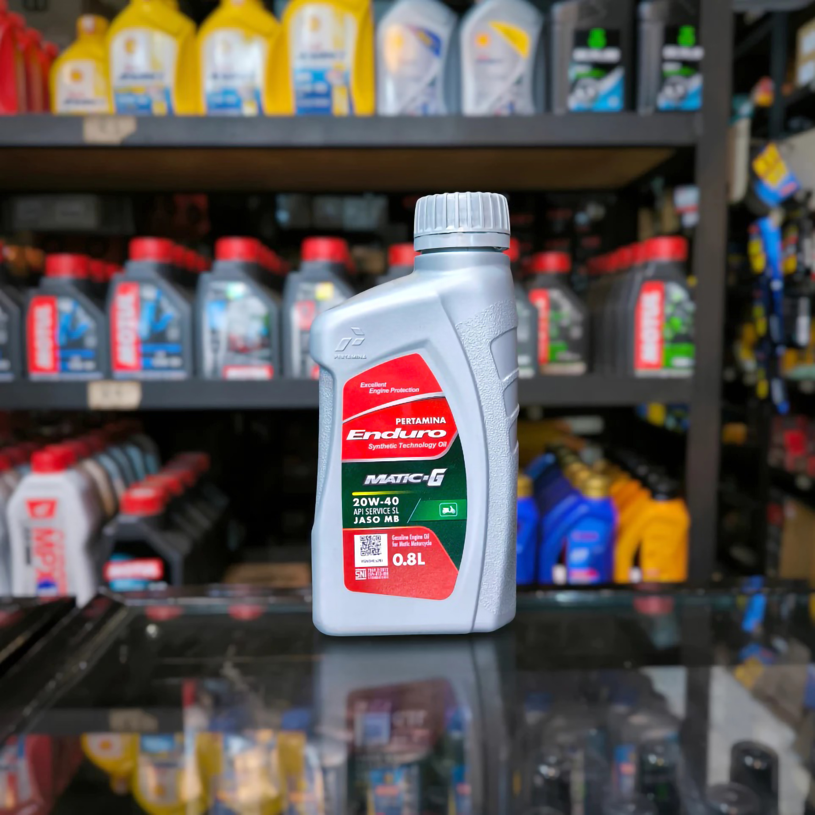Enduro Matic-G 20W-40 adalah pelumas mesin sepeda motor matic empat langkah berkualitas tinggi. Pelumas ini diformulasikan khusus dengan tingkat kekentalan SAE 20W-40, yang didesain untuk pengendara dalam kota yang sering menghadapi kemacetan dan kondisi jalan statis. Tingkatan mutu pelumas ini memenuhi standar API SL dan JASO MB. Tingkatan JASO MB sendiri merupakan standar Jepang khusus untuk motor matic empat langkah, memastikan pelumas ini sesuai dengan kebutuhan spesifik skutik Anda.
