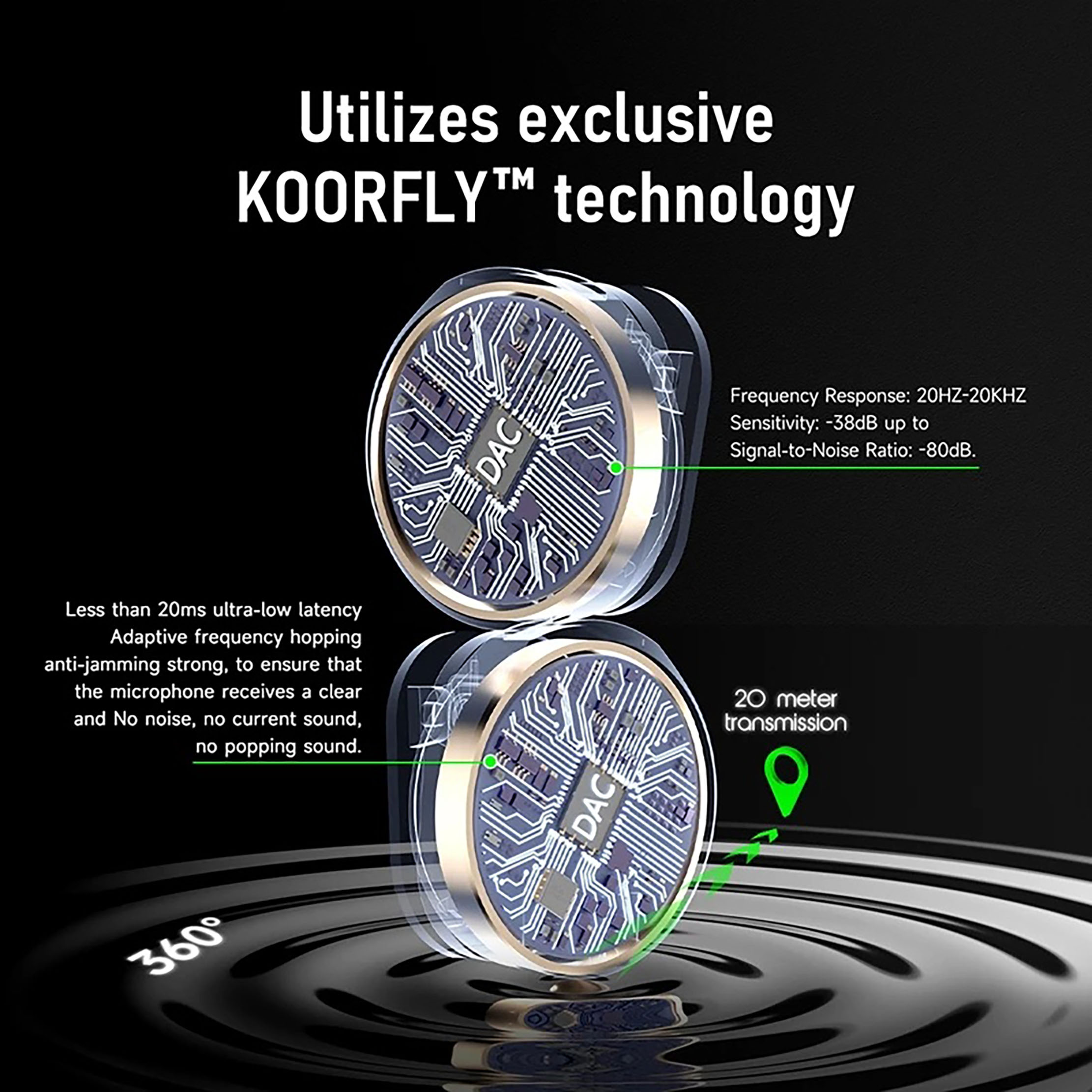 Koorfly Microphone Kf-M01 dirancang untuk memberikan kinerja perekaman yang tak tertandingi dalam bentuk yang sangat ringkas. Mikrofon nirkabel ini sangat kecil, hanya berbobot 9g, menjadikannya salah satu mikrofon mini teringan di pasaran saat ini. Desainnya yang minimalis dan ringan ini sangat mendukung portabilitas dan kemudahan penggunaan.