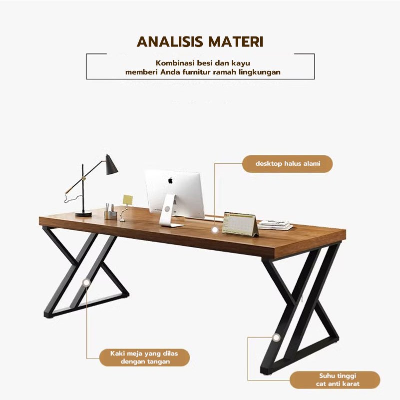 Desain kaki besi yang estetik juga patut diacungi jempol. Meja ini tidak hanya fungsional, tetapi juga menjadi elemen dekorasi yang mempercantik ruangan. Tampilannya yang modern dan minimalis sangat mudah dipadukan dengan berbagai gaya interior, baik di ruang kerja pribadi, kamar tidur, atau bahkan di ruang tamu.