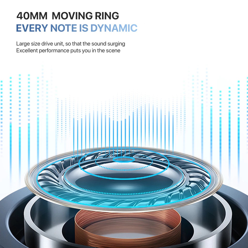 - Kualitas Audio Imersif: Driver 40mm dengan suara surround HD 360° memberikan pengalaman mendengarkan yang kaya dan mendalam.