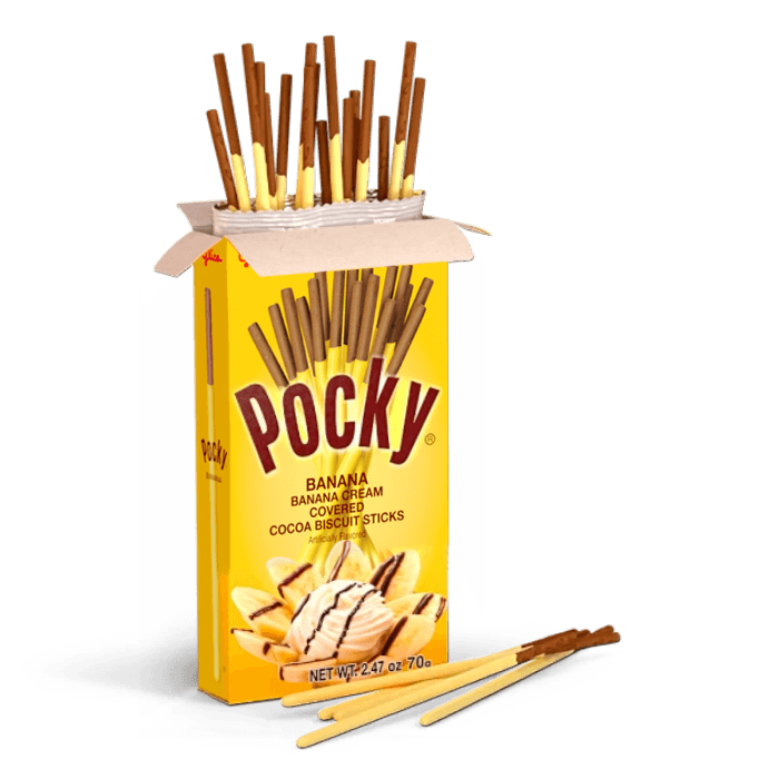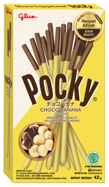 Pocky Choco Banana dari Glico ini adalah perpaduan yang menarik dari biskuit stik dan krim. Secara fundamental, produk ini terdiri dari biskuit stik renyah yang sebagian dilapisi krim dengan rasa pisang yang lembut. Berbeda dengan beberapa varian lain, Pocky Choco Banana ini menggunakan stik biskuit rasa coklat, yang kemudian dipasangkan dengan lapisan krim pisang, menciptakan tampilan yang menyerupai pisang dengan ujung coklat dan bagian kuning di bawahnya.