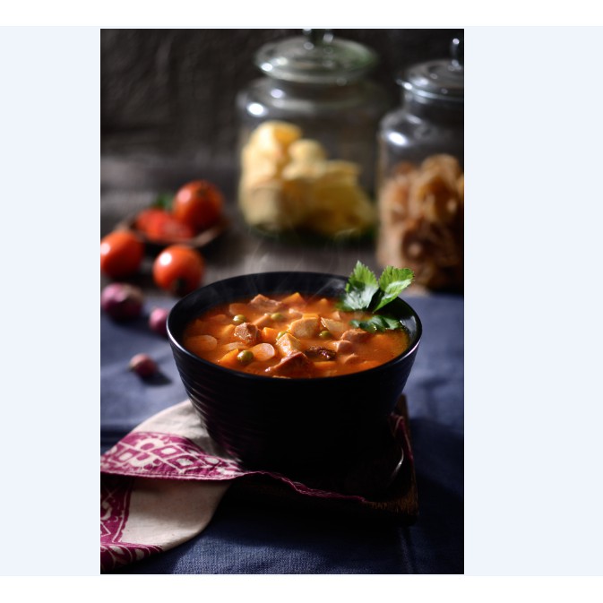 Secara teknis, Bernardi Red Soup dikenal dengan perpaduan kaldu gurih dan rasa asam tomat yang menyegarkan. Konsep "Sup Merah" sendiri merupakan hidangan berbasis tomat yang populer di kalangan keluarga Tionghoa-Indonesia atau Peranakan, khususnya di Jawa Timur. Sayangnya, kami belum menemukan informasi detail mengenai daftar komposisi bahan baku atau tabel nutrisi spesifik (kalori, lemak, protein, karbohidrat) untuk Bernardi Red Soup ini dalam penelusuran kami. Namun, mengacu pada deskripsi rasanya, kami bisa membayangkan bahan-bahan dasar yang berkualitas untuk menciptakan harmoni rasa gurih dan segar dari tomat. Untuk penyajian, produk ini sangat praktis, hanya membutuhkan waktu sekitar 5-7 menit untuk dihangatkan dan siap disantap. Setelah dibuka, disarankan untuk memindahkan isinya ke wadah penyimpanan tertutup dan menyimpannya di lemari es.