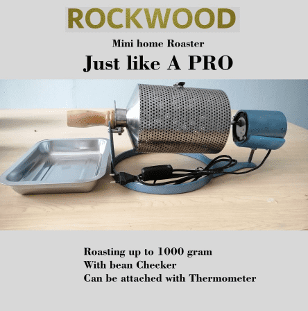 Rockwood Coffee Roaster JMS-007 merupakan mesin sangrai biji kopi yang mengusung material utama stainless steel untuk drumnya. Desainnya yang ringkas membuatnya cocok untuk penggunaan di rumah atau ruang terbatas di kafe. Secara spesifik, alat ini memiliki panjang tabung 20 cm dan diameter tabung 14 cm.