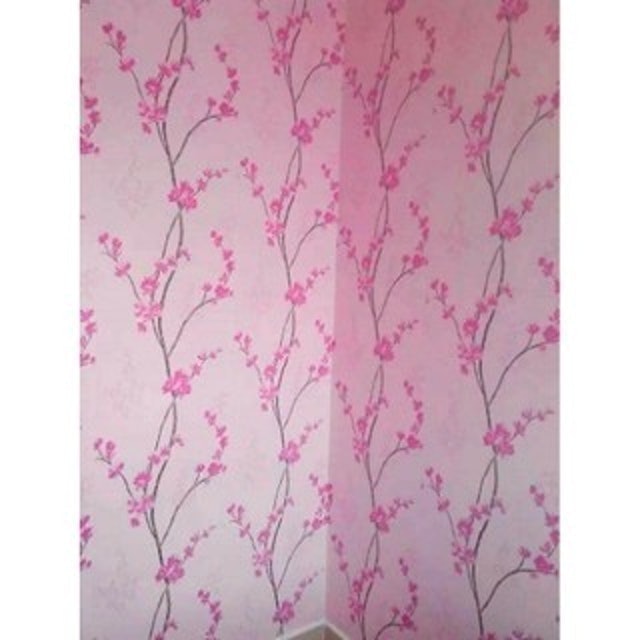 | Produk | Wallpaper Stiker Dinding Motif Bunga Sakura Pink Cream |
