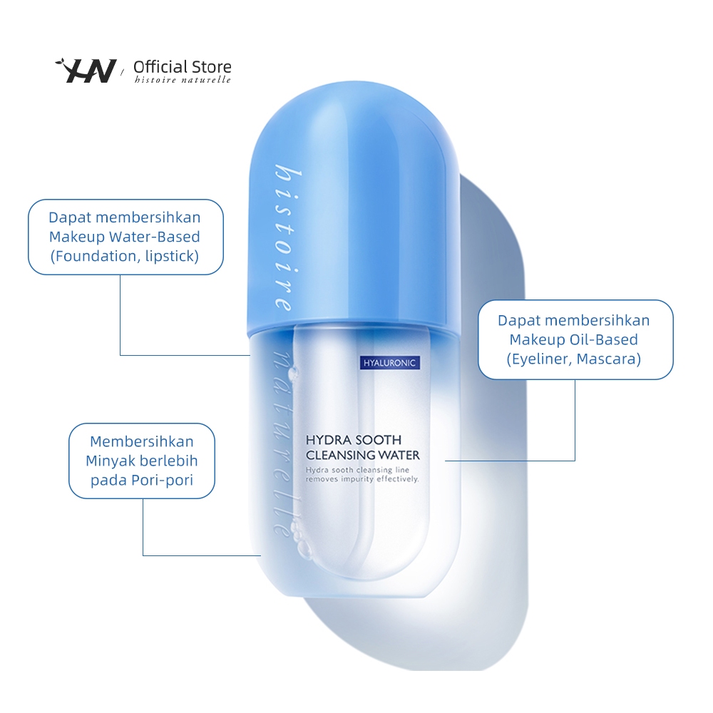 Histoire Naturelle Hydra Sooth Cleansing Water diformulasikan sebagai cleansing water berbasis air yang lembut namun efektif untuk membersihkan kotoran dan residu makeup secara menyeluruh, membuat wajah terasa bersih dan segar. Produk ini dirancang agar cocok untuk semua jenis kulit, termasuk kulit normal, berminyak, kombinasi, berjerawat, dan sangat direkomendasikan untuk kulit sensitif.