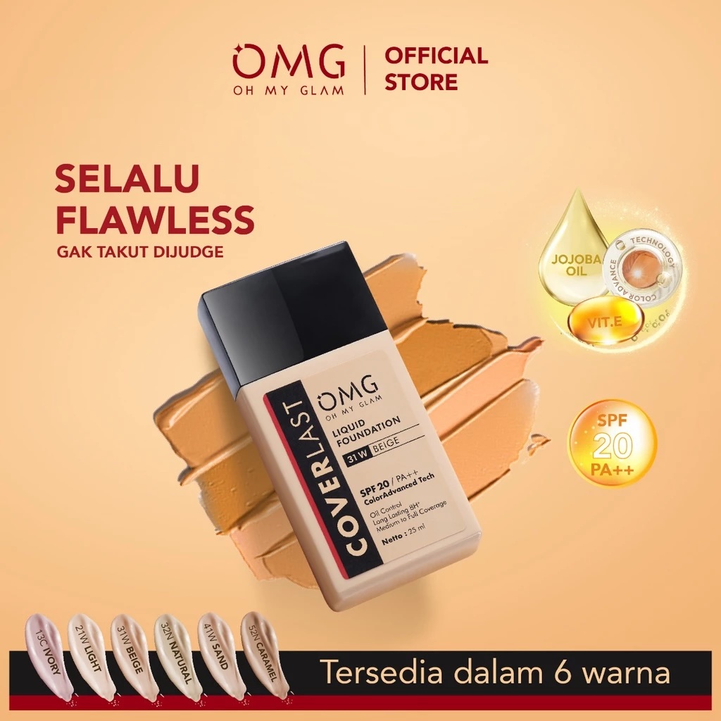OMG Coverlast Liquid Foundation adalah produk alas bedak cair dari Paragon Technology and Innovation yang dirancang khusus untuk memenuhi kebutuhan kulit wanita Indonesia. Foundation ini diformulasikan dengan Color Advanced Technology, bahkan ada versi terbarunya yang menyebutkan Color Advanced Tech™ 2.0. Teknologi ini memungkinkan coverage yang dapat dibangun dari medium hingga full, menyesuaikan dengan tingkat kebutuhan Anda.