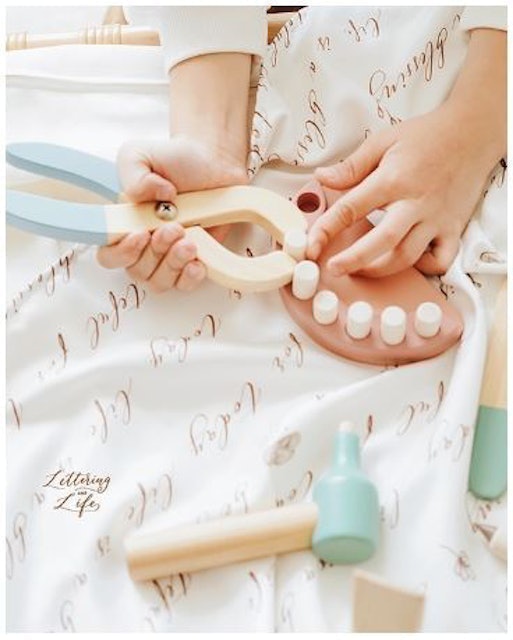 Ketika kami memegang "When I Grow Up Dentist Set," kesan pertama adalah kualitas dan perhatian terhadap detail. Set mainan ini dirancang untuk anak-anak berusia 3 tahun ke atas, yang merupakan usia emas untuk eksplorasi dan imajinasi. Lettering and Life memilih material kayu pinus berkualitas tinggi (High Grade Pine Wood) untuk semua komponennya. Pilihan material ini tidak hanya menjamin durabilitas, tetapi juga memberikan sentuhan estetika yang hangat dan aman bagi anak.